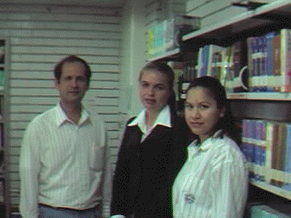 ![]() | En esta foto aparece El Ing. Abel Montemayor, Vero que esta en la biblioteca con su labor en el puesto de circulació, y la Lic. Beatriz |
